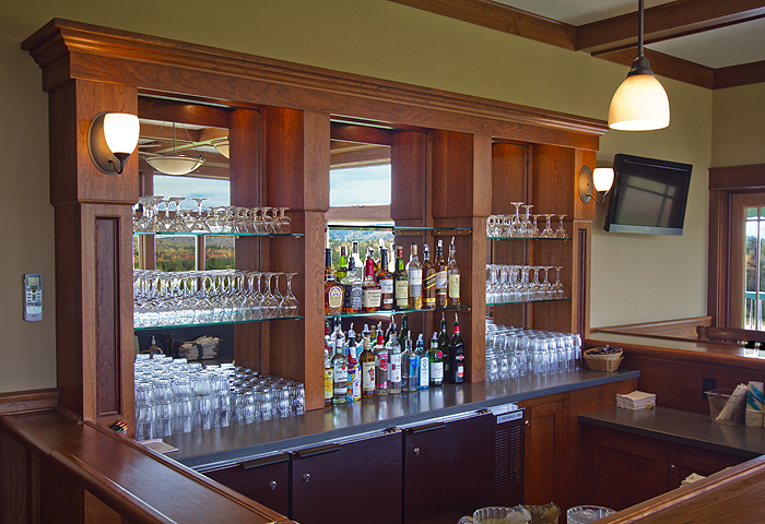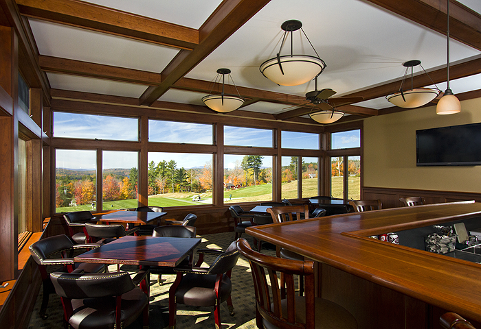 Located on 260 acres of former farmland in Newbury, New Hampshire the Baker Hill Golf Club offers stunning views of the Sunapee region and beyond. The Club’s Founders had a vision of creating an award-wining golf course that maintains the structural distinction and natural beauty of Benjamin Baker’s 18th century homestead. Old Hampshire Designs preserved the post and beam framework while renovating one of the original farm buildings. The result is a rich and fascinating Pro Shop that features every modern convenience while retaining the value of local, historic charm. Old Hampshire Designs also designed and built customized additions to the Clubhouse kitchen and dining area, the latter featuring extensive cherry built-ins and a handsome coffered ceiling.